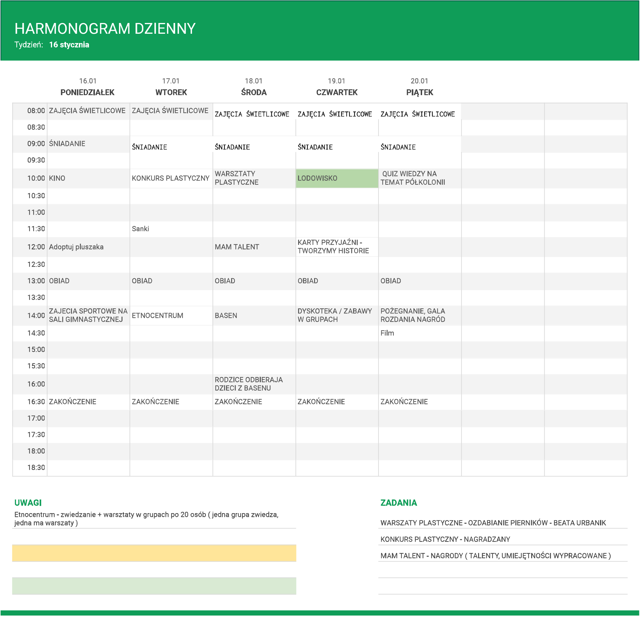 ak będzie wyglądał PLAN DNIA?