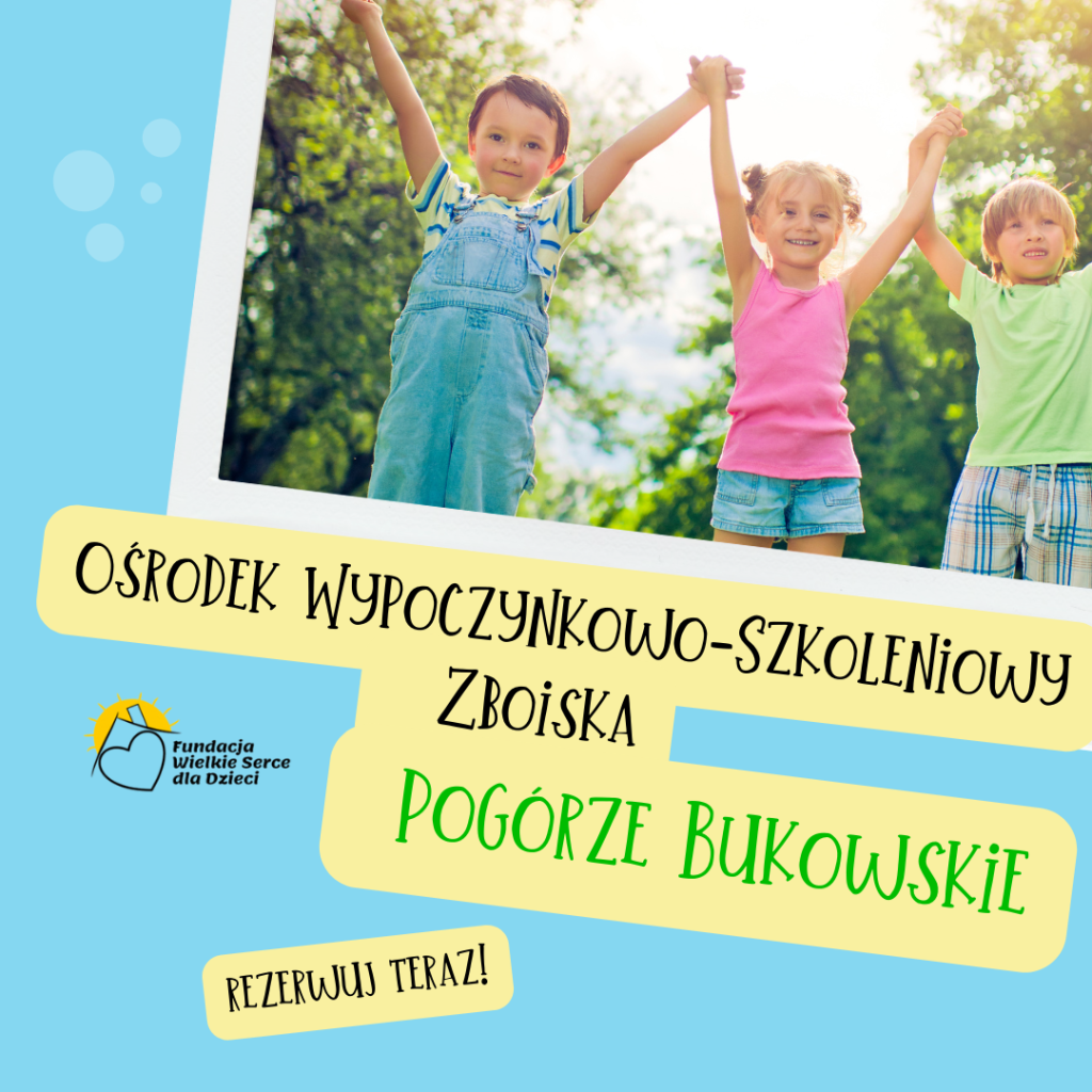 Obozy letnie z Wielkim Sercem: moc atrakcji i wyjątkowa lokalizacja W tym roku nasze kolonie odbędą się w Ośrodku Wypoczynkowo-Szkoleniowy w Zboiskach, który zapewni dzieciom domową atmosferę, smaczną kuchnię, życzliwą obsługę i wygodne pokoje z widokiem na przyrodę urokliwego Pogórza Bukowskiego.